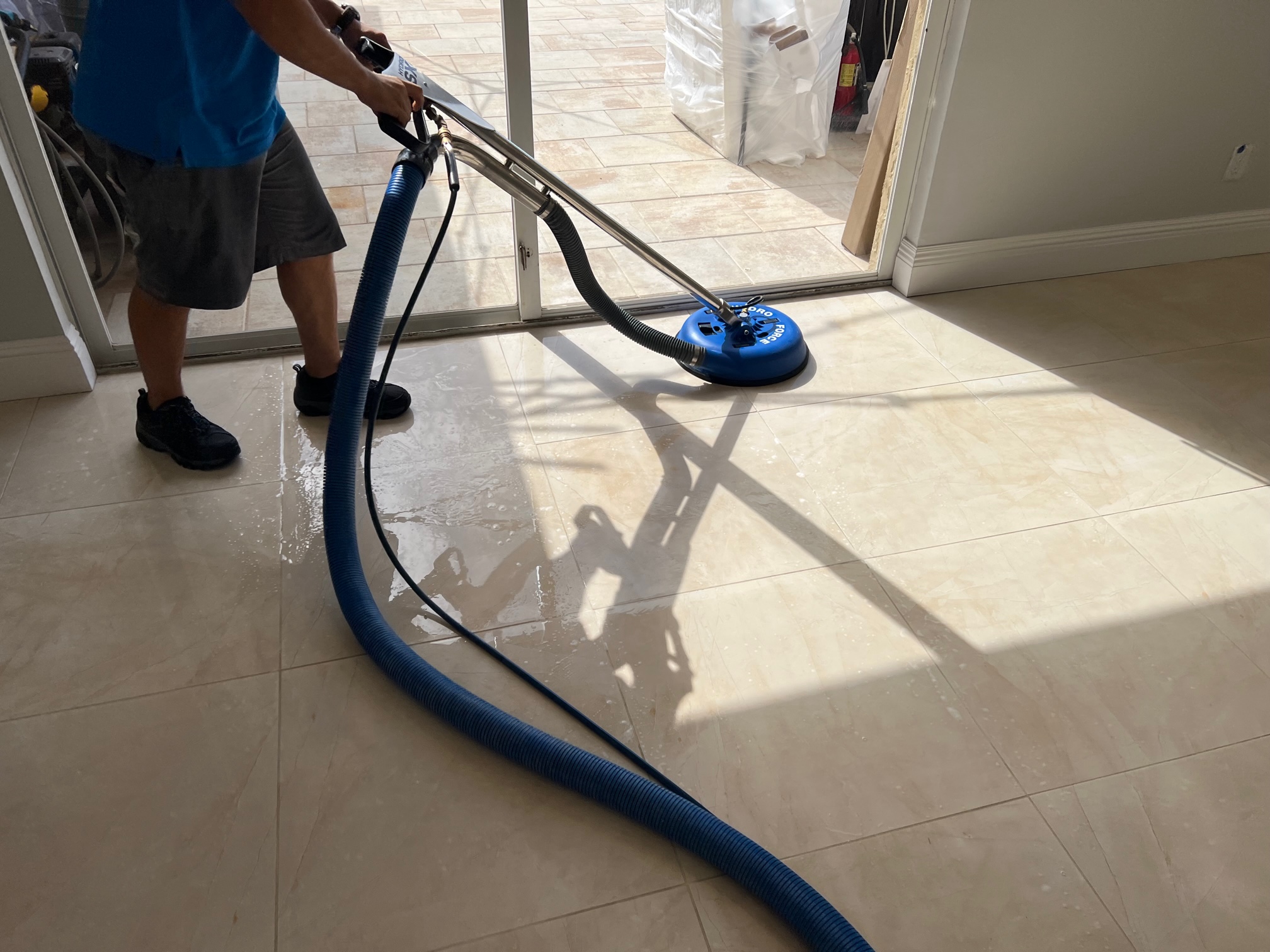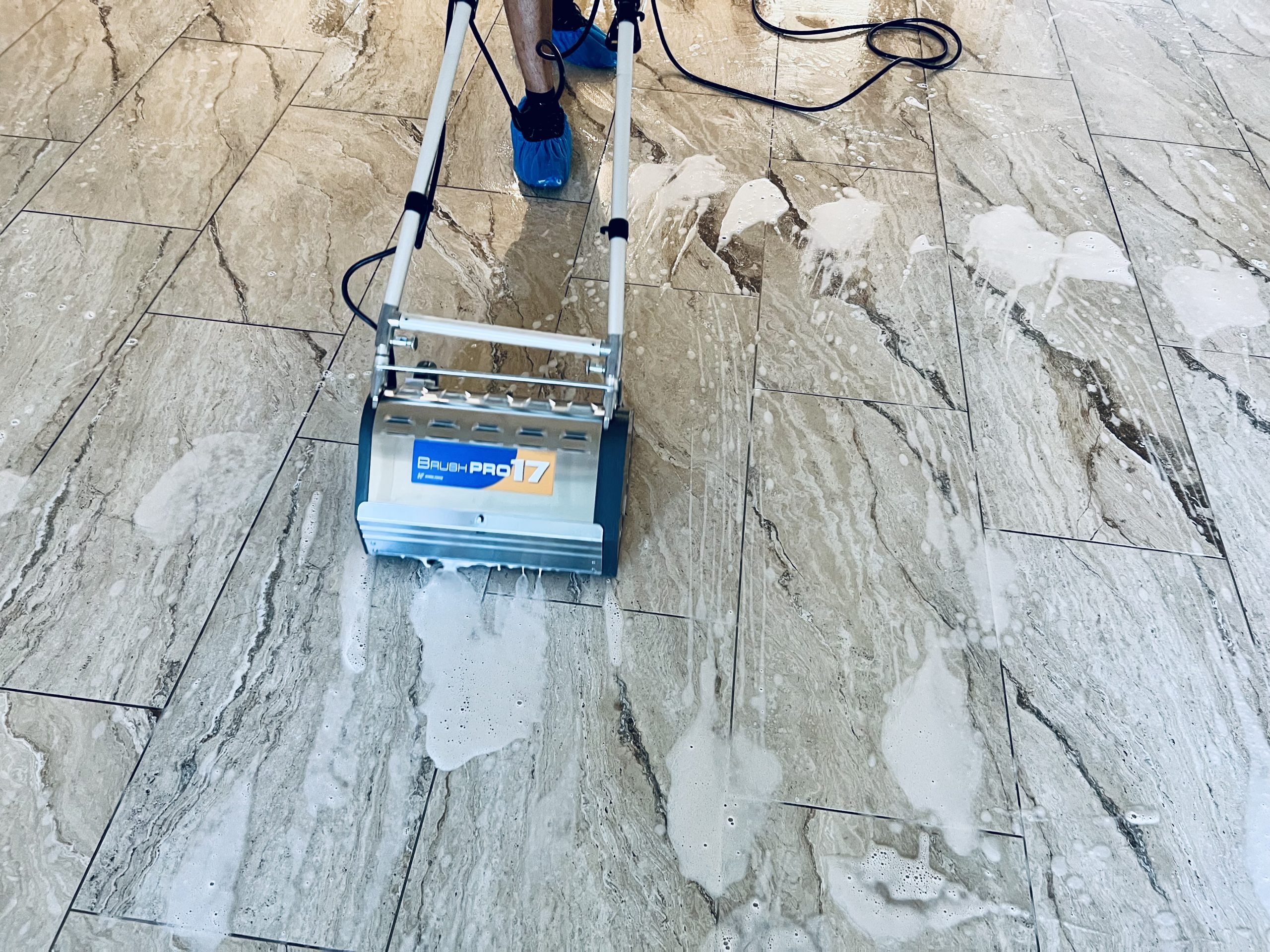When choosing a tile and grout cleaning company to service your floors… Ask about the type of equipment they use. It is very important to have the proper equipment rated for the surface being cleaned. PSI over 800 is needed to deep clean tile and grout. Do they have truck-mount equipment or a small portable unit? Do they use non-toxic, fume free cleaners? Ask about their cleaning process. What equipment is used to agitate the solution? Do they thoroughly dry the floors? What is the sealing process?